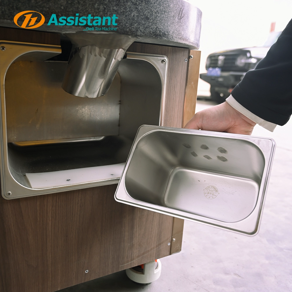 Taş değirmen, çay yapraklarını kendi ağırlığıyla toz haline getirdiği için, taş değirmenin boyutu ne kadar büyükse, öğütülmüş yeşil çayın parçacık boyutu o kadar ince ve yeşil çayın kalitesi o kadar iyidir.